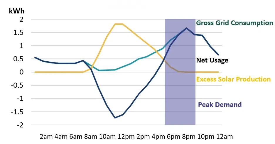 Well, that’s where things get complicated. Net metering programs typically offset the cost of a kilowatt-hour (“kWh”) exported by a solar customer’s system on a 1-to-1 basis. Meaning, that even though the power produced at that time is of relatively lower value, as discussed above, it’s credited at the utility’s base rate (higher value). Why is that a problem? Unfortunately, when the utility is forced to buy power at a more expensive price than it is worth, rates rise comparatively for non-solar ratepayers. Solar users still use power during the 5-9PM window when power is relatively more expensive for the utility to procure or produce. Then under the flat rate structure, credits are applied on a 1-for-1 basis and lead to increased costs for non-solar ratepayers.
